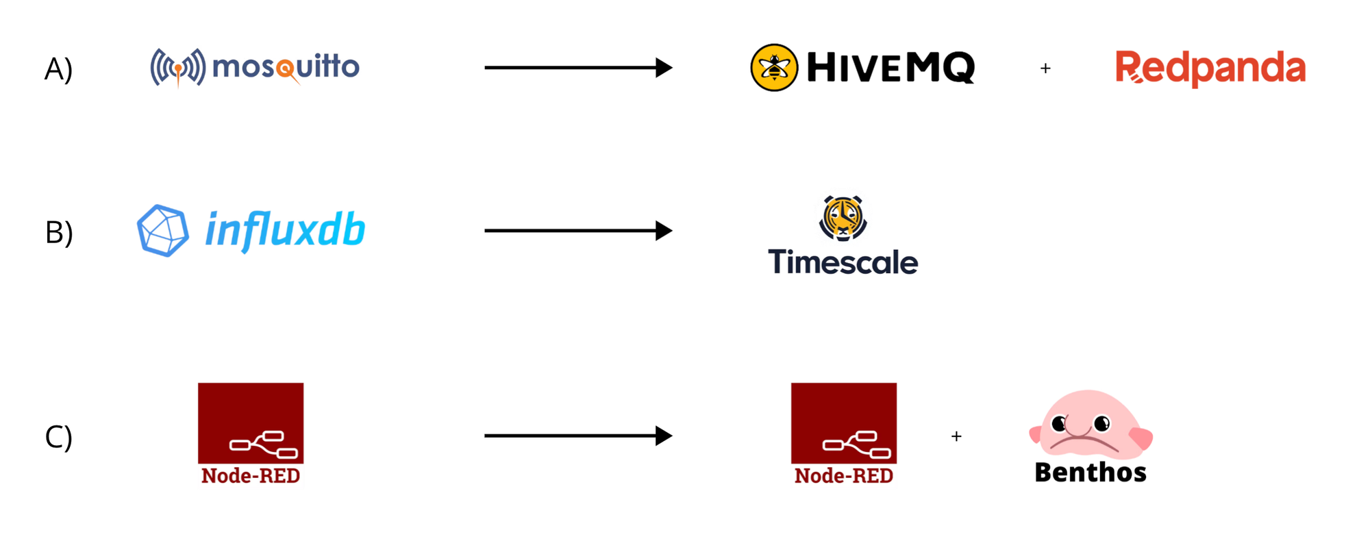 A: Mosquitto --> HiveMQ + Redpanda