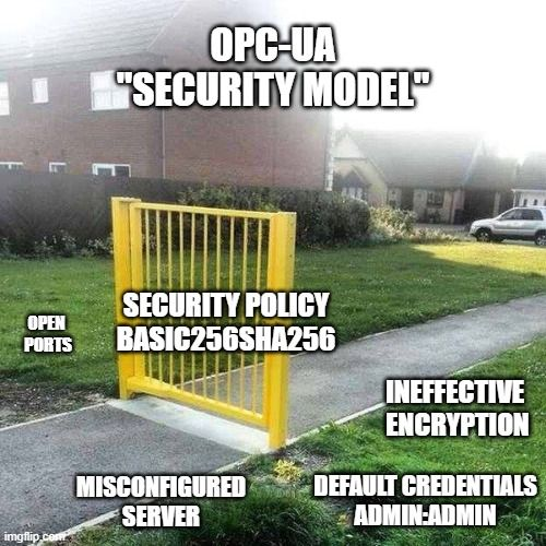 The claim of "encryption" within OPC UA provides a mere illusion of security rather than the reality (see also our meme). Merely toggling OPC UA to “encrypted” status can be deceptive, offering users a false sense of security without the backing of robust security measures.