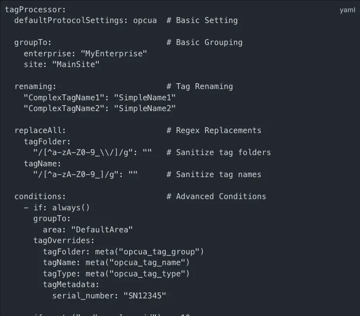 To address this, we’re proposing an easier alternative that reduces the need for programming and allows for pure configuration (check it out here). This new approach retains the full flexibility that power users require while making it more accessible for those less familiar with programming concepts. Our goal is to continuously simplify IT/OT best practices without compromising on power or scalability.