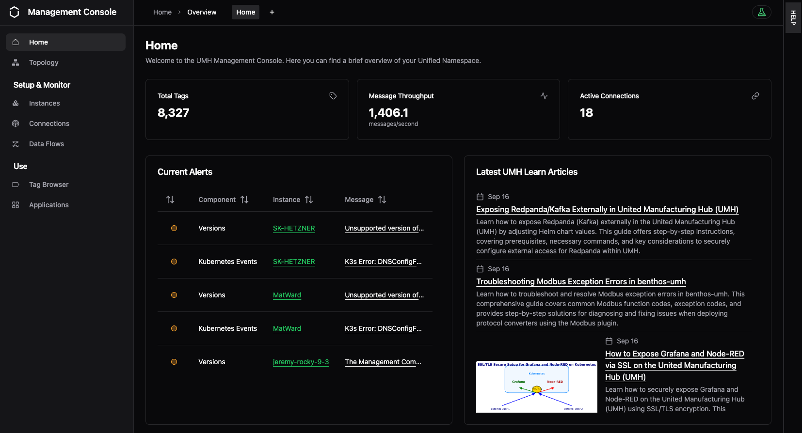 - Additionally, a list of the latest UMH blog posts is now available to help you learn about or improve your deployment.