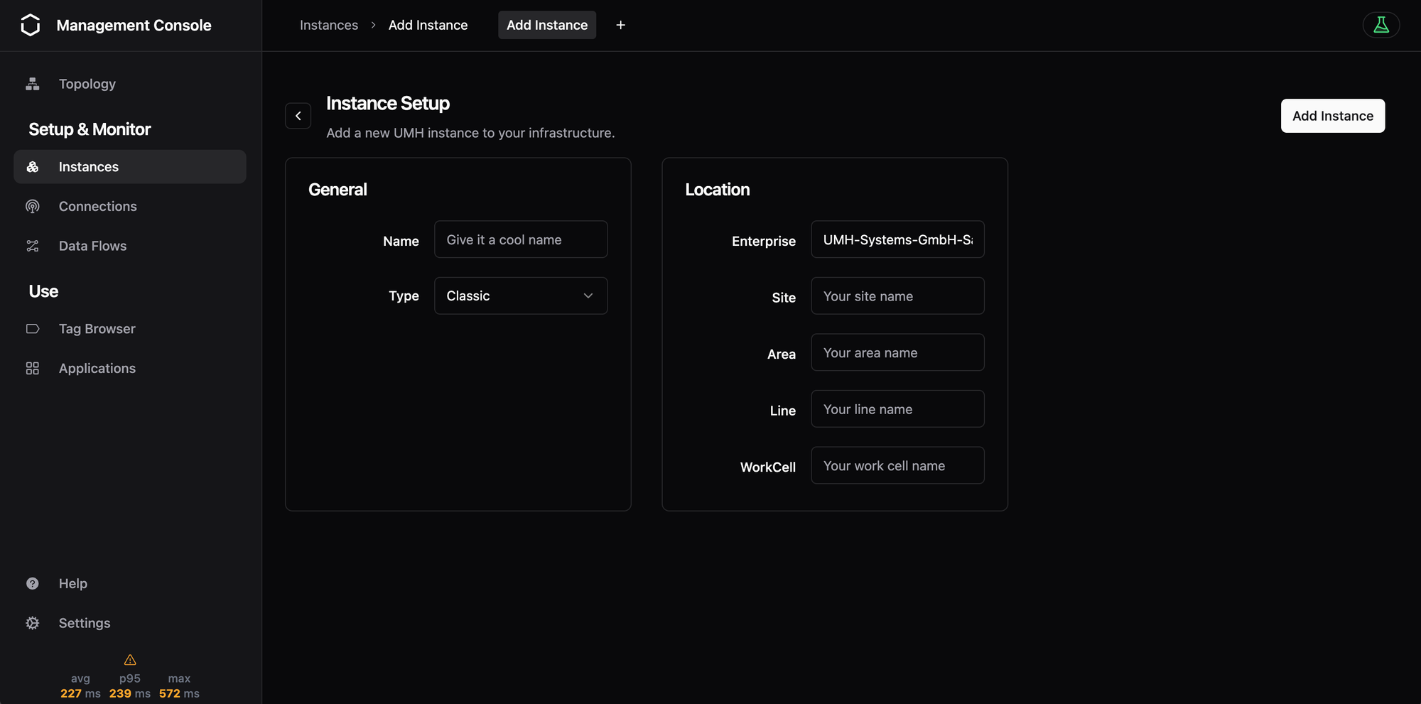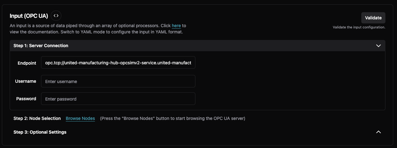 - Select a specific Benthos-UMH image tag in “expert mode” to test advanced or custom builds.