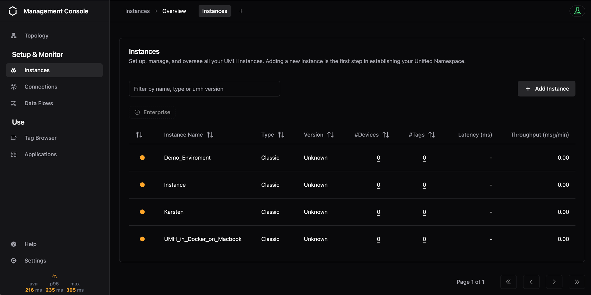 console.log()and other console methods in Node-RED JavaScript processor to work like browser environments. You can now properly debug JavaScript transformations by logging complex objects and seeing their actual structure instead of[object Object]. - Faster Component Navigation - You can now click directly on component names to edit them, instead of using the three-dot menu every time. This works across Instances, Data Flows, and Models - just click the name in the table and you'll navigate straight to the configuration page. The three-dot menu is still available for additional actions, but your most common task (editing) is now just one click away.
