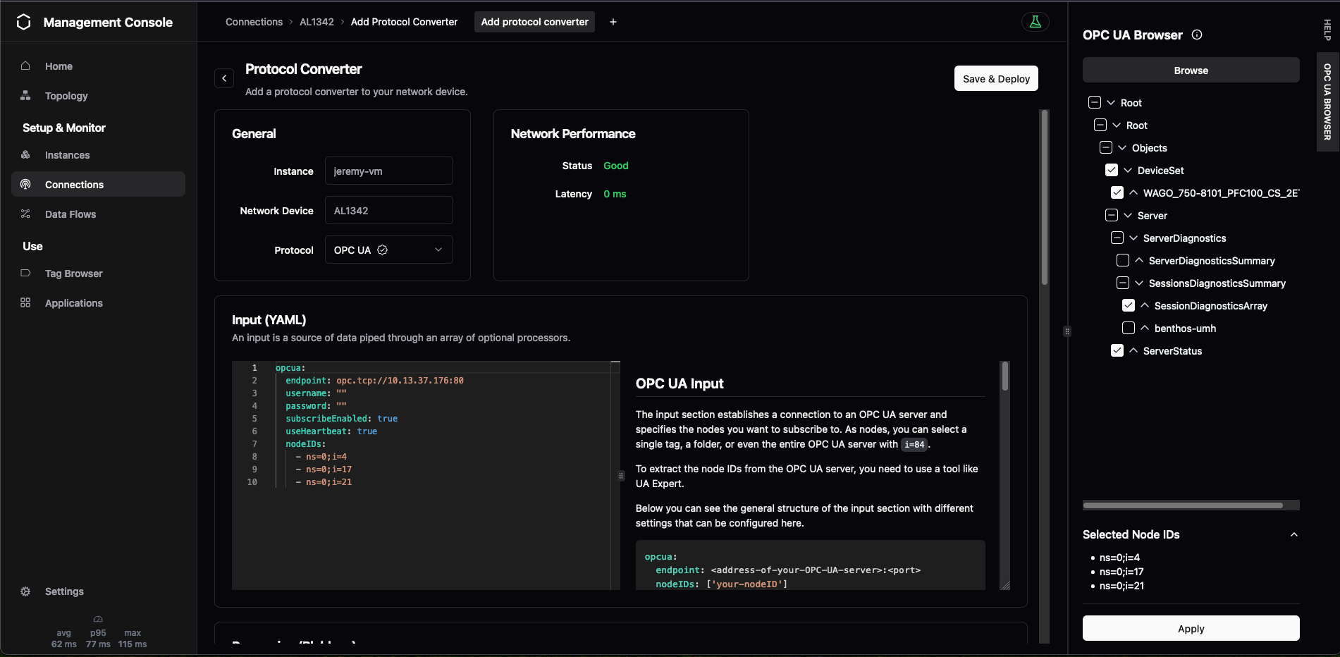 - We have added to our Protocol Converter feature in the management console the ability to browse and explore the configured OPC UA Server
