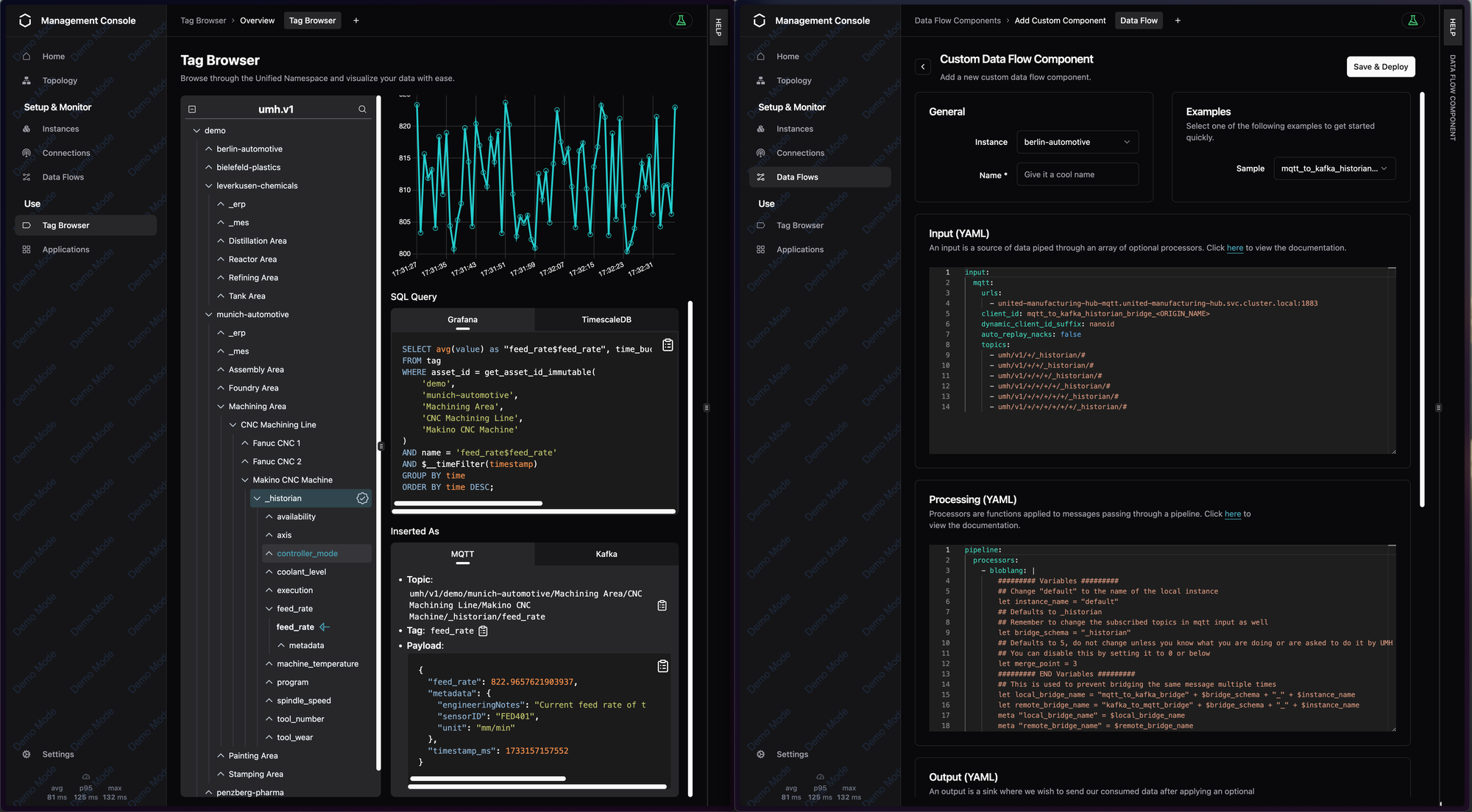 - Data Flow Components: We’ve enabled the deployment of fully custom Benthos setups to make all Benthos use cases available through the Management Console. We also included a template, e.g., mirroring the UNS to AWS SQS, - more to follow soon.