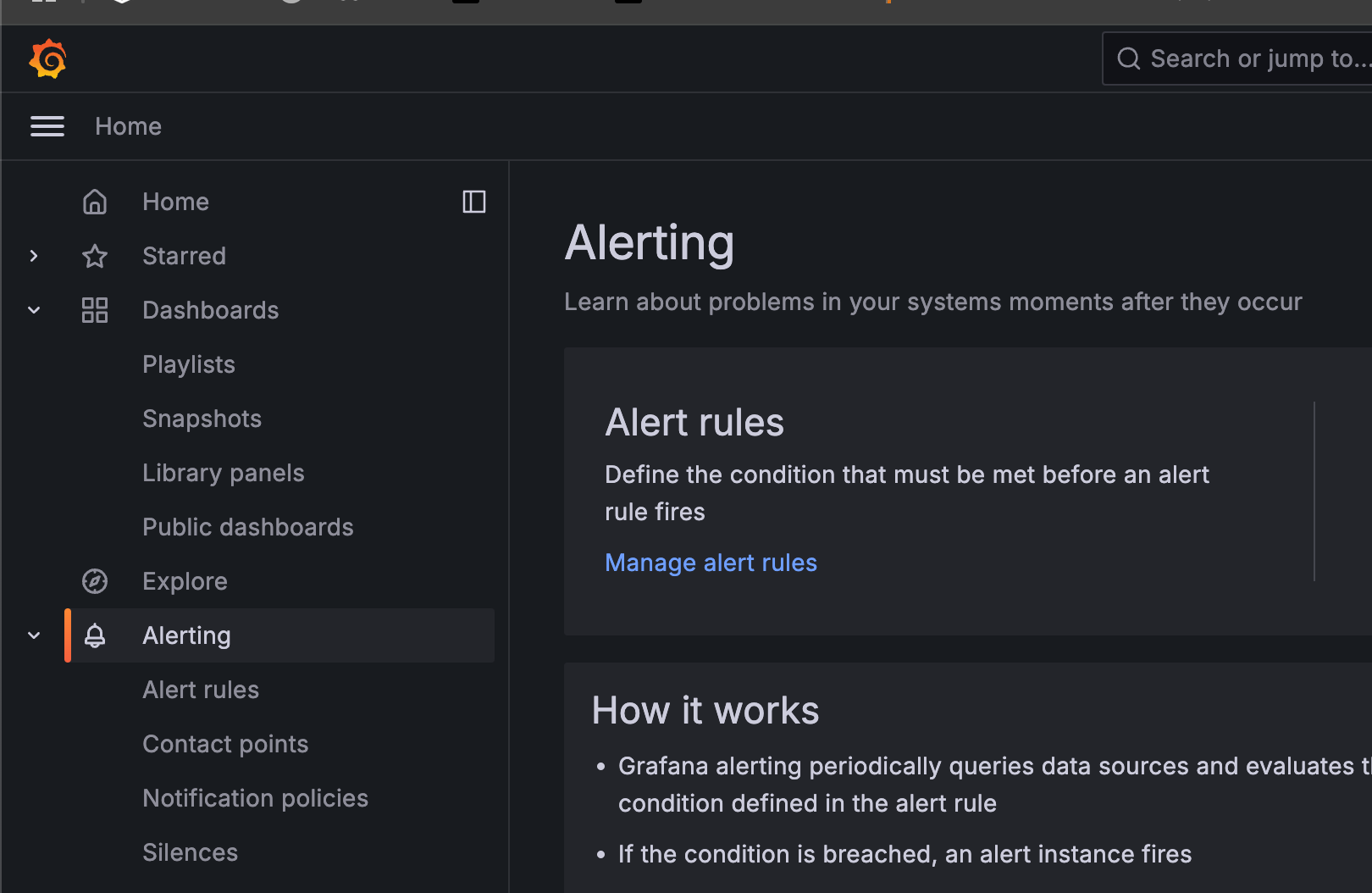 - Go to Grafana → Manage alert rules (left menu, bell icon).