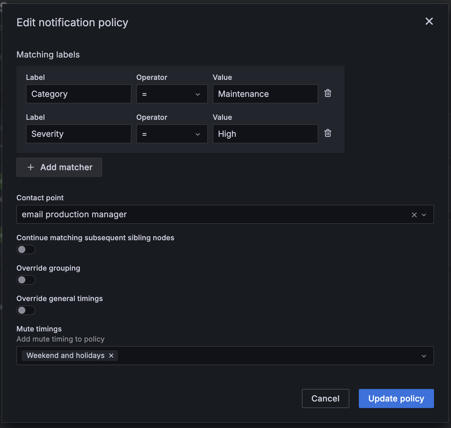 You now have a powerful alerting system tailored to real industrial needs (workdays vs. weekends, maintenance teams, escalation tiers, etc.).
