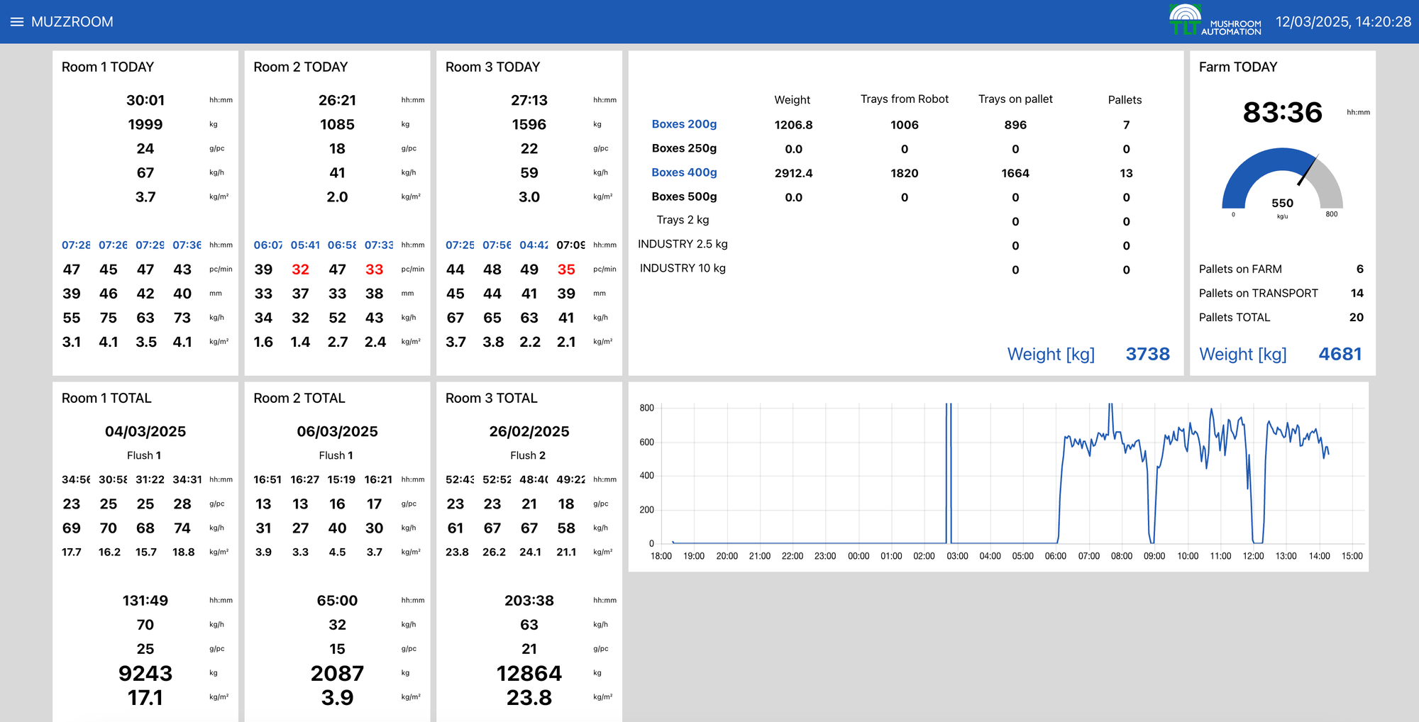 An increase in the picking rate substantially reduces labor costs, often cited as up to 50% of production expenses in mushroom farming. With real-time dashboards, operators are more engaged, competing for higher yields and responding quickly to downtime or slowdowns.