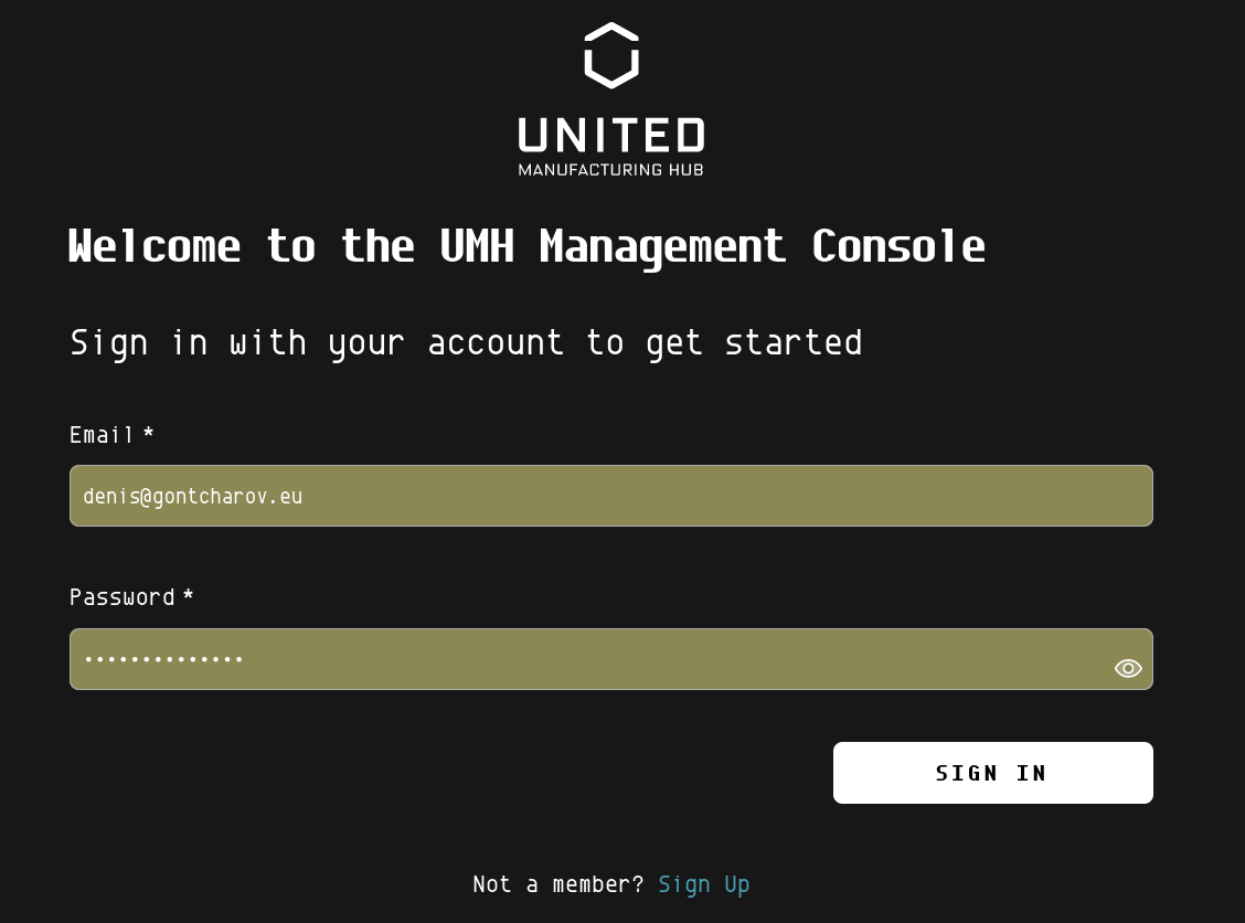 Next, we install the UMH together with the Management Companion via the Management Console. Navigate to the United Manufacturing Hub Installation page. On that page, we find a link to the Management Console. Create an account if you don't already have an account, and then sign in to the Management Console.
