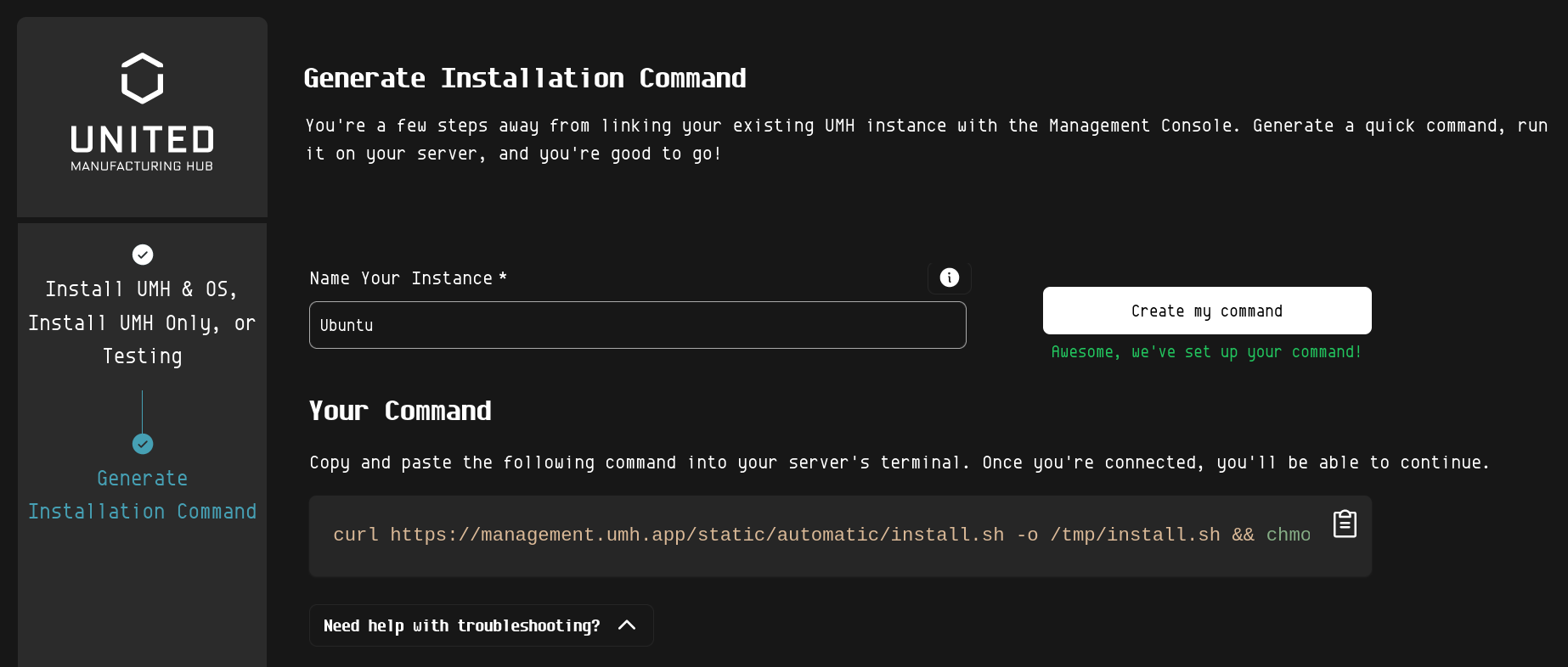 Next, we want to create a new instance in the management console that will point to the UMH installation on our Ubuntu system.