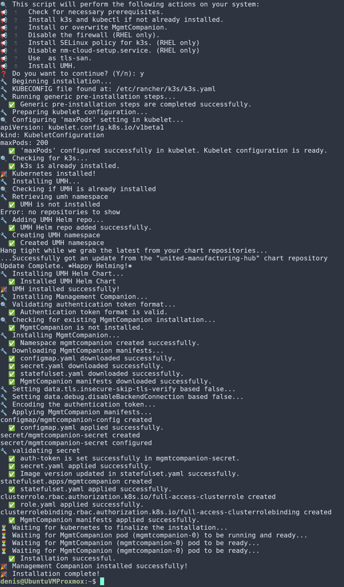From the output, we see that the installation of both the UMH and the Management Companion is successful: