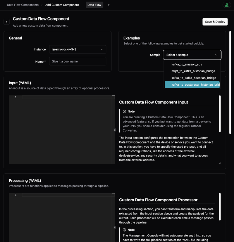 We encourage users to define their own data contracts to meet specific needs, aligning with our commitment to empower power users while maintaining a robust default setup. With the new Benthos-based bridges and Data Flow Components, you can easily duplicate existing bridges and reuse configurations we’ve developed, tailoring them to your requirements.