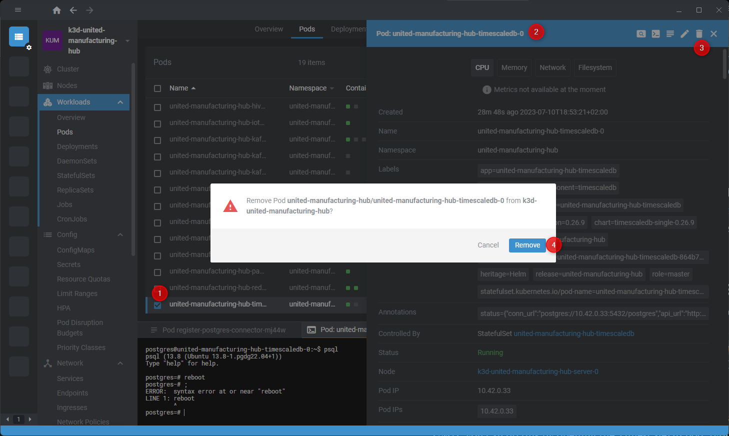 - A ConfigMap, which holds configuration settings. In this case, it houses a file named connector.json, which contains all the necessary information for connecting to the UMH internal PostgreSQL / TimescaleDB database.