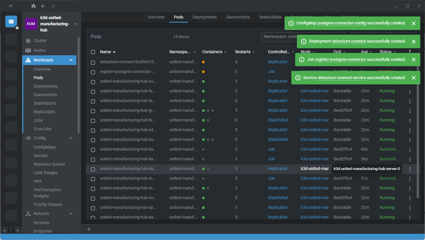 Deploying Debezium is easy if you're using the United Manufacturing Hub. You just need to copy-paste a provided text file into OpenLens / UMHLens (Video tutorial) to deploy Debezium into Kubernetes. This installs Debezium, and configures it to stream all changes of the table assettable to the topic ia.raw.timescaledb.factoryinsight.public.assettable.