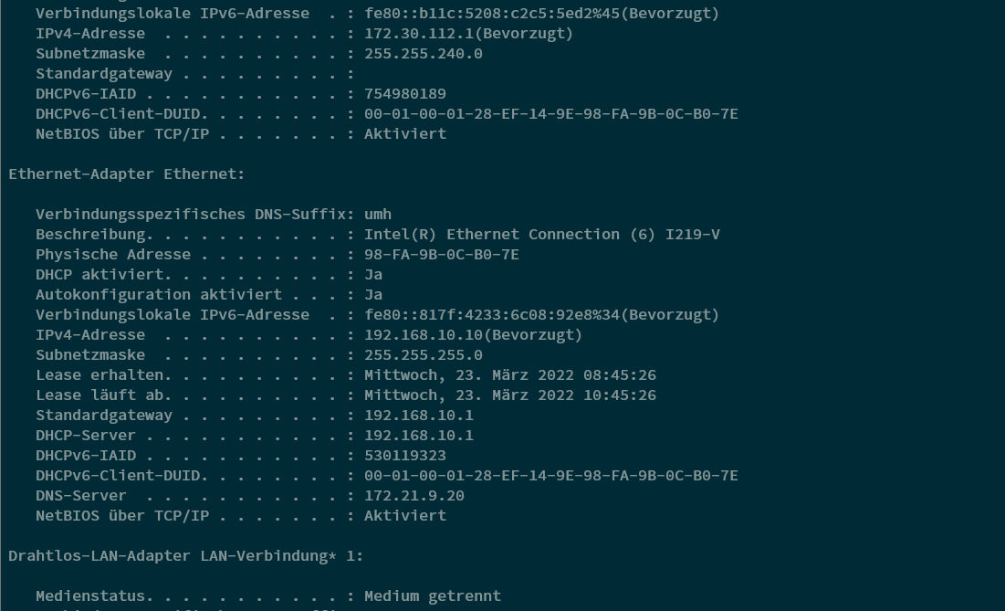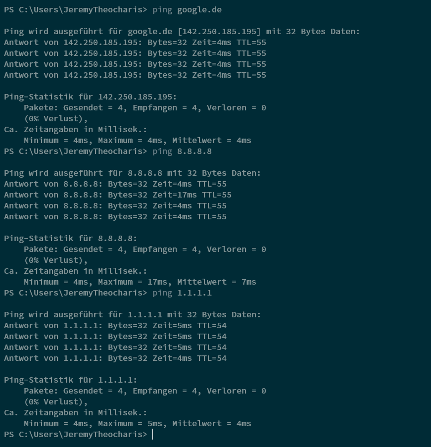 Test Internet Access: Run the command ping google.de to check for general connectivity to the internet and your DNS settings.
