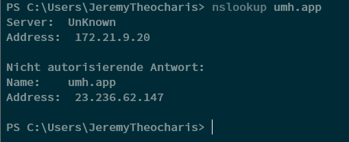 nslookup umh.appto check if your DNS settings are set up correctly.
